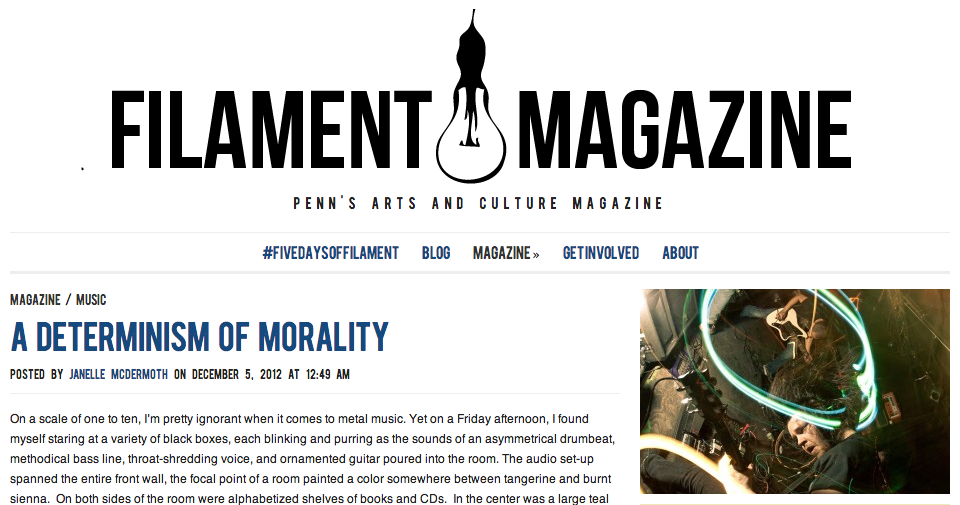 Janelle's profile of friend and metal guitarist Matt Weed was published in Filament Magazine. Click for the full text!
